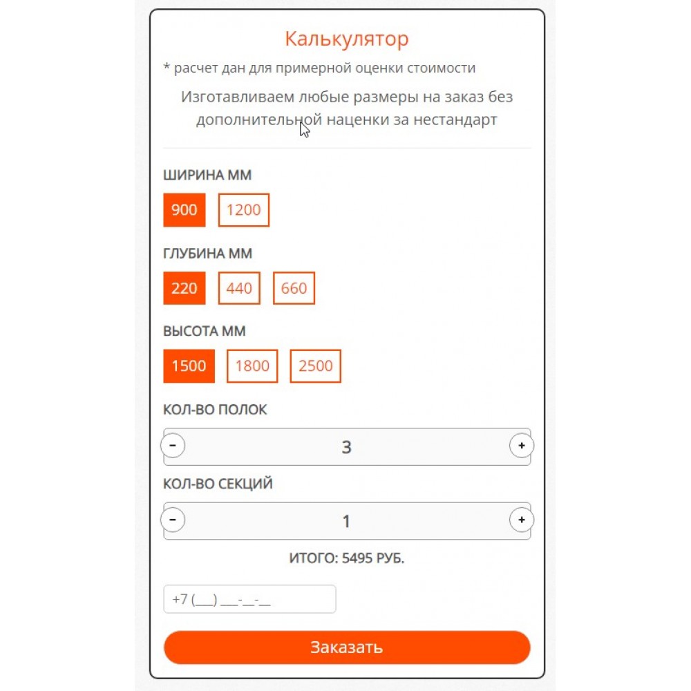 Модуль "Калькулятор стеллажей" от веб-студии Максвебсайт г. Полевской