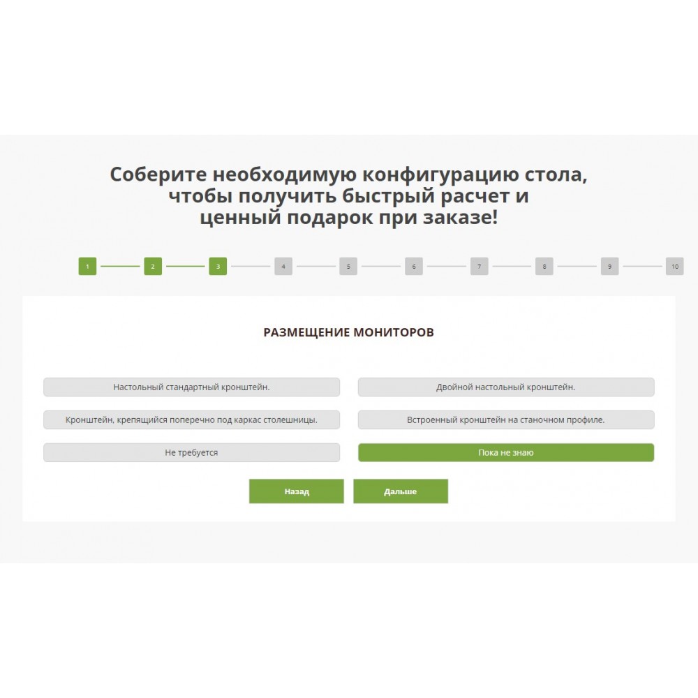 Квиз-опросник, который позволяет клиенту быстро и просто выразить свои пожелания при заказе диспетчерской мебели.