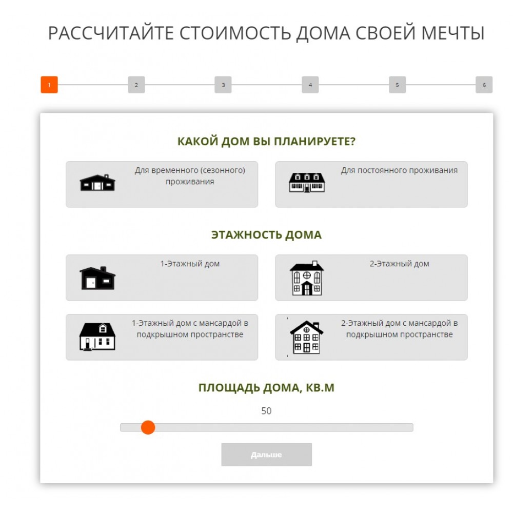 Квиз конфигурации дома от веб-студии Максвебсайт г. Полевской