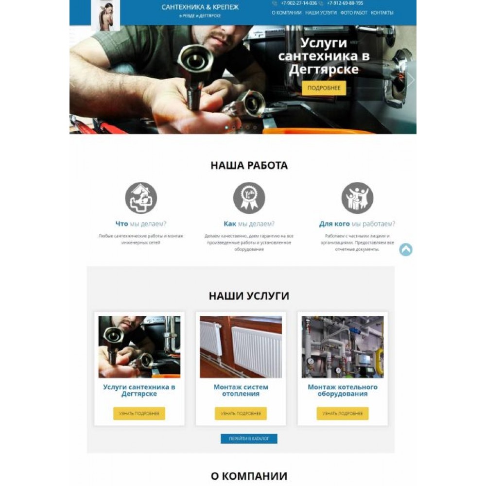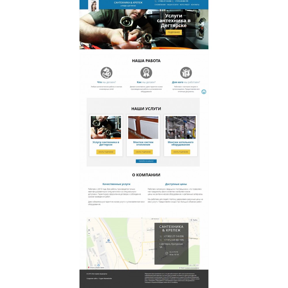 Бизнес-сайт по сантехническим услугам в г.Дегтярске от веб-студии Максвебсайт г. Полевской