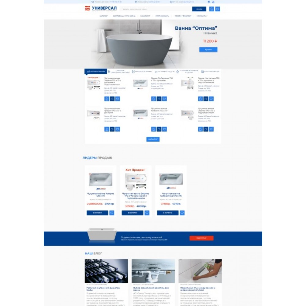 Интернет-магазин чугунных ванн и сантехники Универсал от веб-студии Максвебсайт г. Полевской