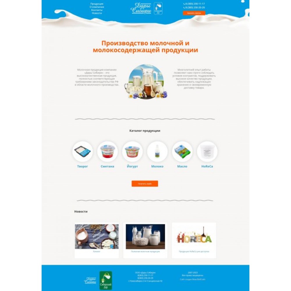 Сайт производителя молочной продукции от веб-студии Максвебсайт г. Полевской